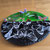 In diesem Werk habe ich Acryl, Farbspray, Gelfarben und Glitter auf einer Schiefersteinplatte vereint. Die Malerei wurde nach der Trocknung mit einer dicken Schicht Epoxidharz versiegelt, auf